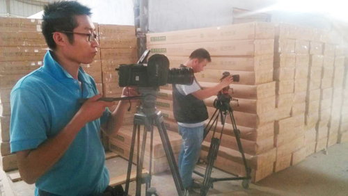 从前期策划到拍摄制作,华荧员工马不停蹄。周四,前期摄制组同事们就携带器材到徐州最大的家具商场红星美凯龙为坐落在此的专卖店拍摄。周五,前期摄制组的同事们紧接着又来到家具厂,顶着高温酷暑在闷热的家具厂内进行拍摄。两天的拍摄任务紧张而又有序,华荧拍摄人员对待工作认真负责的态度也受到了家具厂领导的首肯。